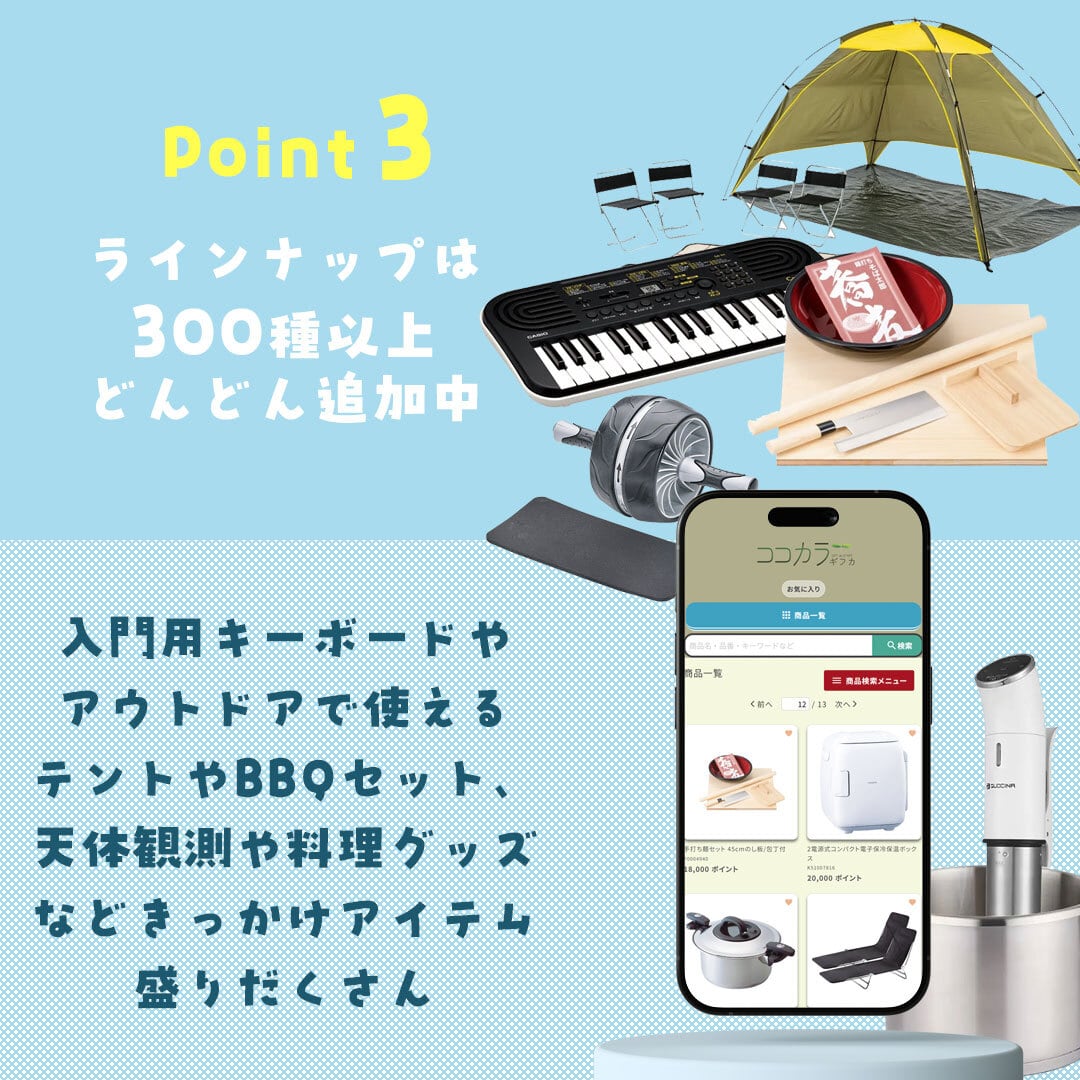 選べる交換商品のジャンルは、絵画、アウトドア、栽培、プログラミング、料理、そば打ちなどのカテゴリーで随時更新をしております。
