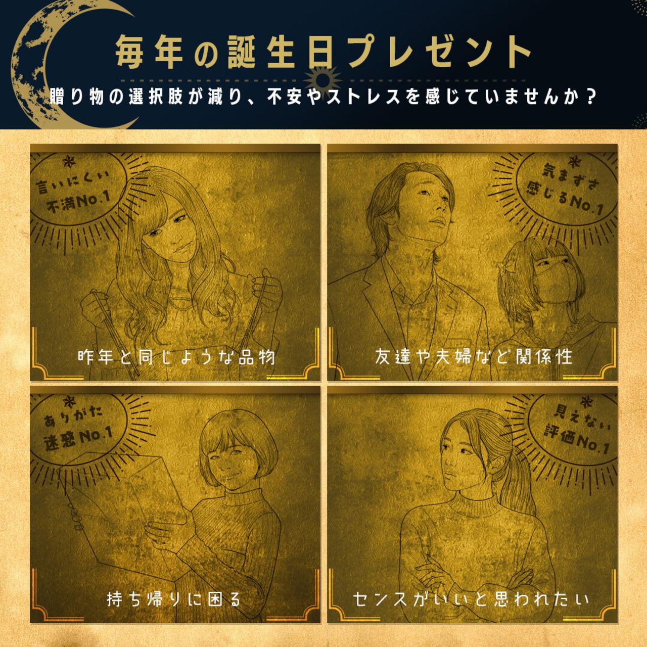 でもせっかくの特別な日を"絶対に失敗したくない”ギフトをコンセプトに、そして今までのギフカと違いカードが貰った人の星座になっているので特別なカタチとして記念日を盛り上げてくれます。