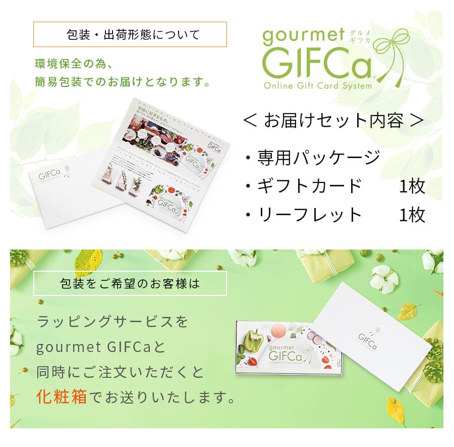 ギフカはギフトカードを受け取られた方が、ネット上の「gourmet GIFCa商品交換サイト」を利用して贈られたポイントを使って、自由に商品交換ができる新しいコンセプトの贈り物です。