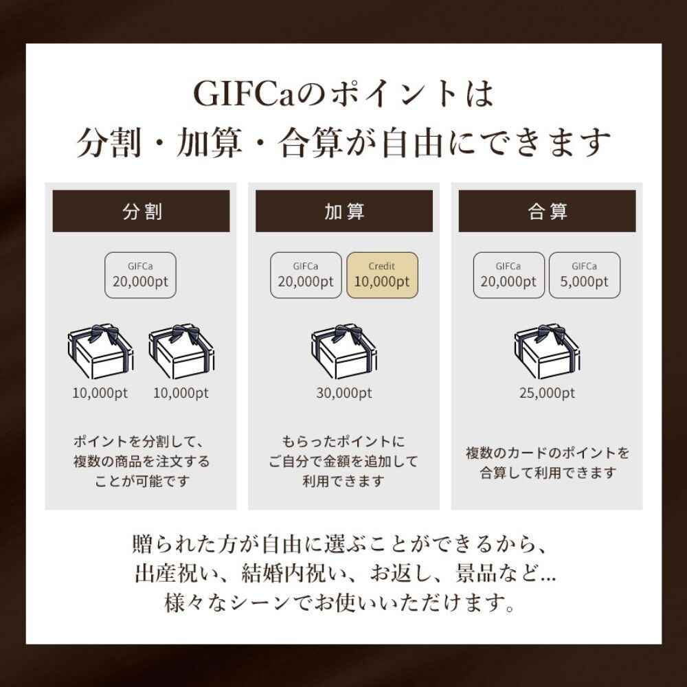 ギフカはギフトカードを受け取られた方が、ネット上の「Angel GIFCa商品交換サイト」を利用して贈られたポイントを使って、自由に商品交換ができる新しいコンセプトの贈り物です。